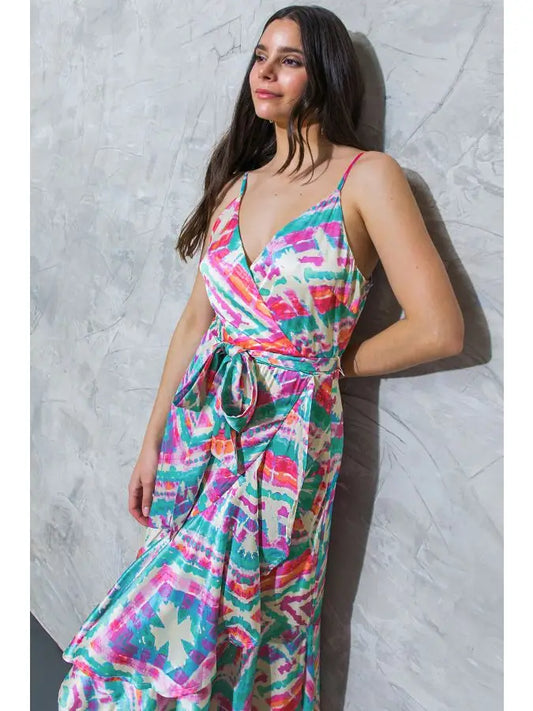 Printed Satin Maxi Dress