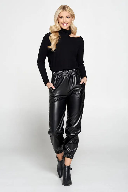 Renee C. - Made in USA Black Faux Stretch Leather Pants with Pockets