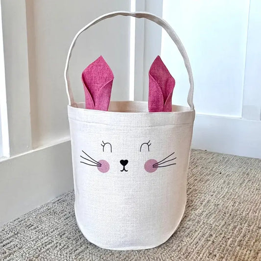 Ivory Homestead - Printed Face-- Bunny Ears Linen Easter Basket