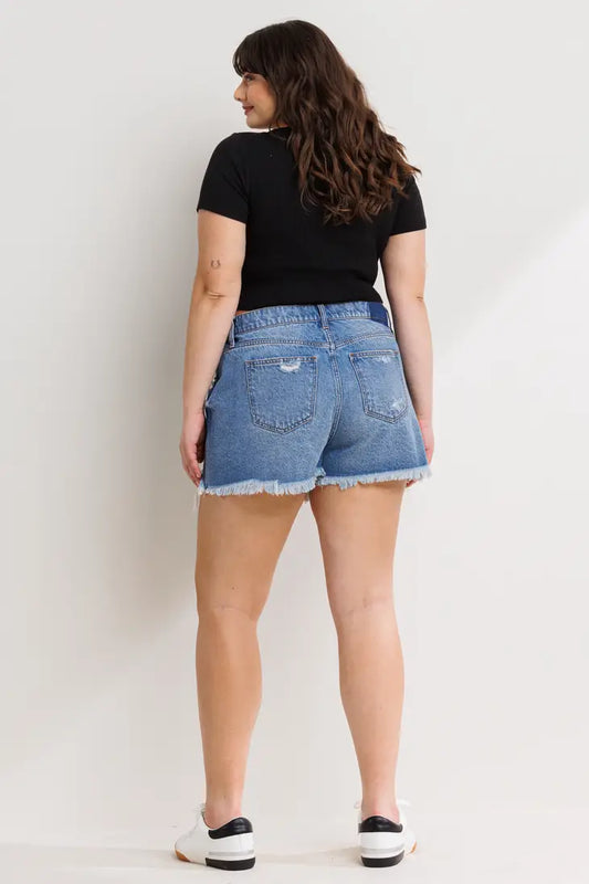 SneakPeek - High Rise Plus Distress Short w/ Frayed Hem