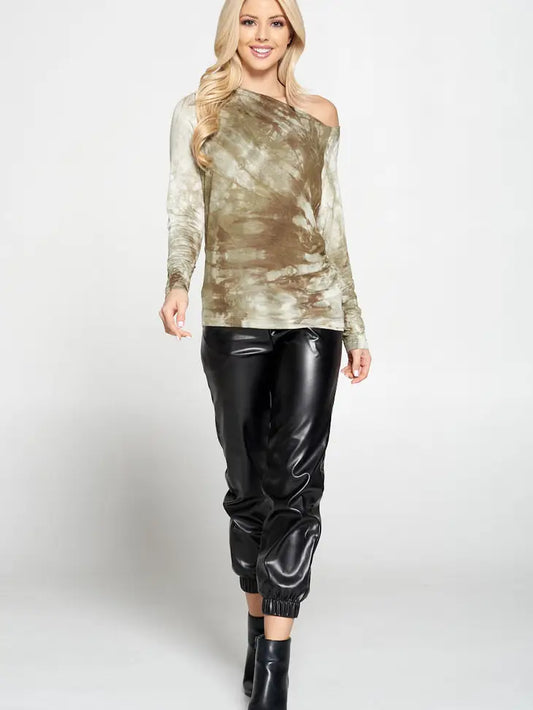 Renee C. - Made in USA Olive Tie Dye Off the Shoulder Top