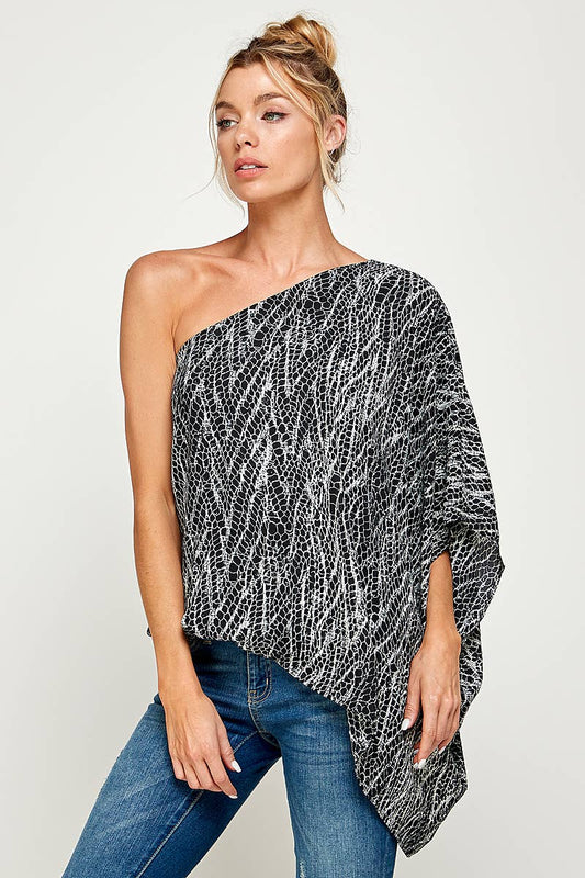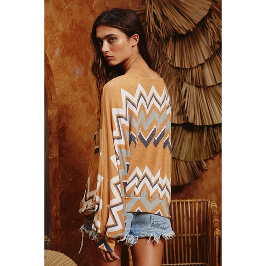 Zig Zag Pattern Bat-wing Detailed Long Sleeves Top