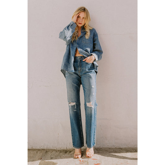 SneakPeek - Midrise Bootcut Jean w/ Distress and Hem Accent