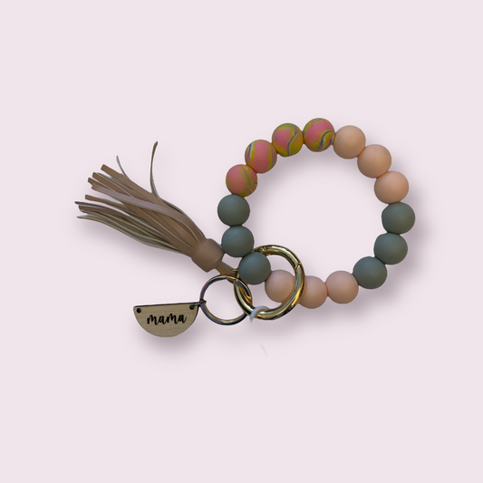 Silicone Beaded Tassel Bracelet Wristlet Bangle Keychain With Mama Disc