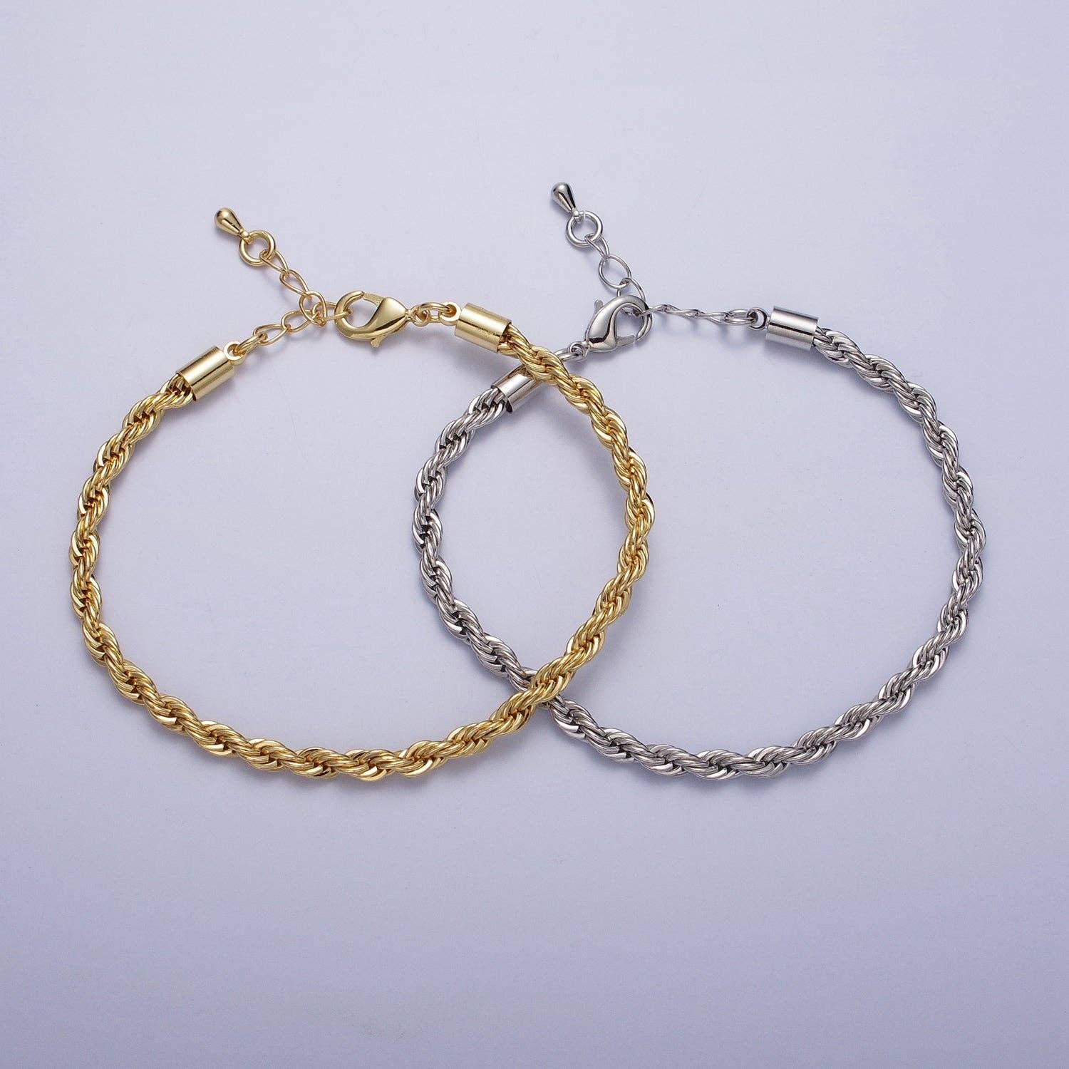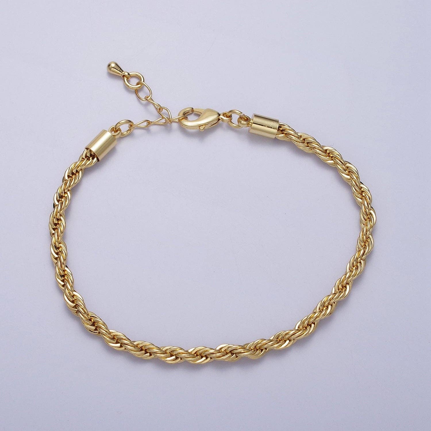 Gold Twisted Rope Chain Bracelet 7", 3.7mm Gold Filled