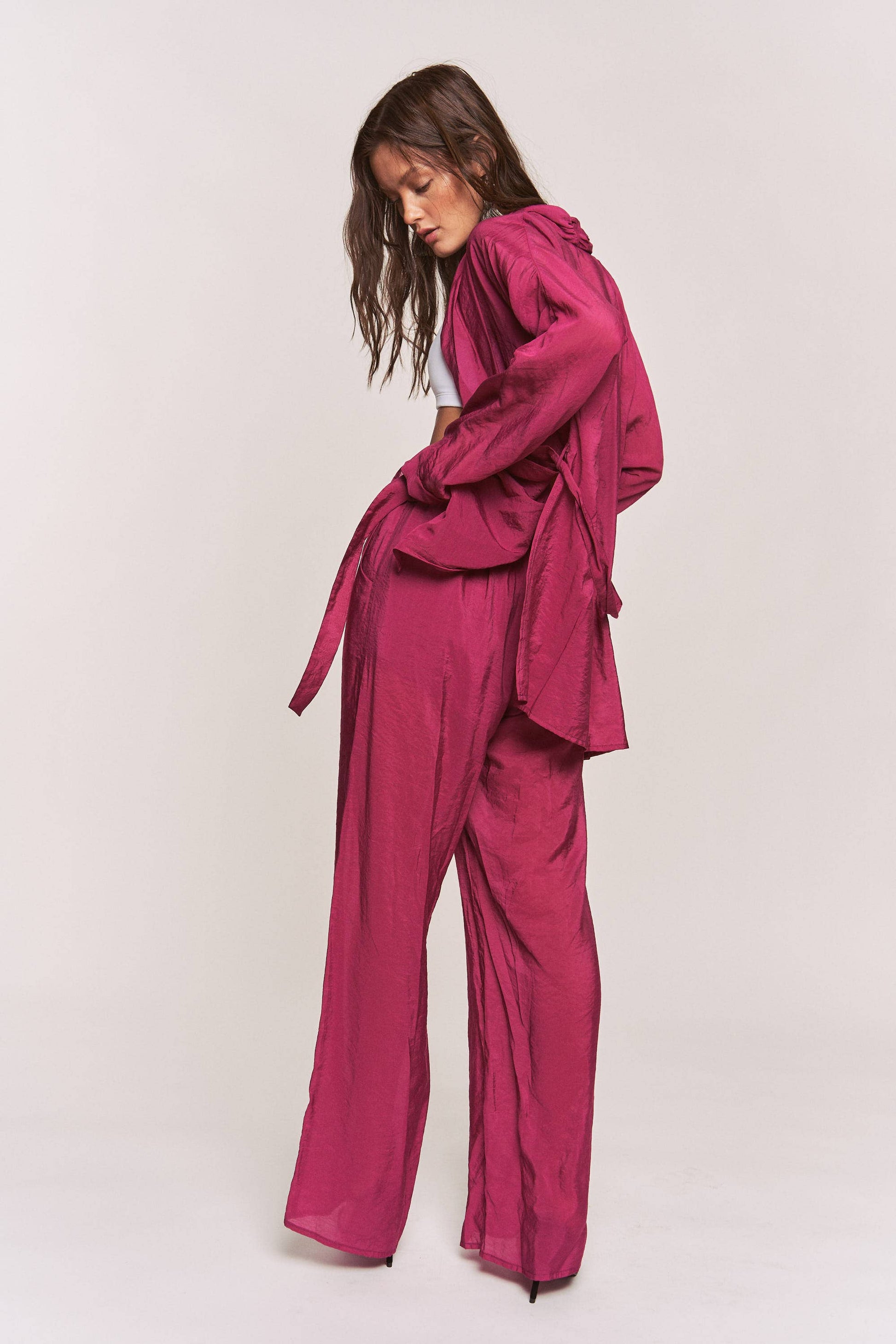 Step out in style with this matching set featuring a Side Slit Open Cardigan and Tie Waist Pants . Elevate your look with these must-have pieces that will have you feeling confident and put-together. Recommend sizing up. If you wear a small, order a medium. 34" inseam.